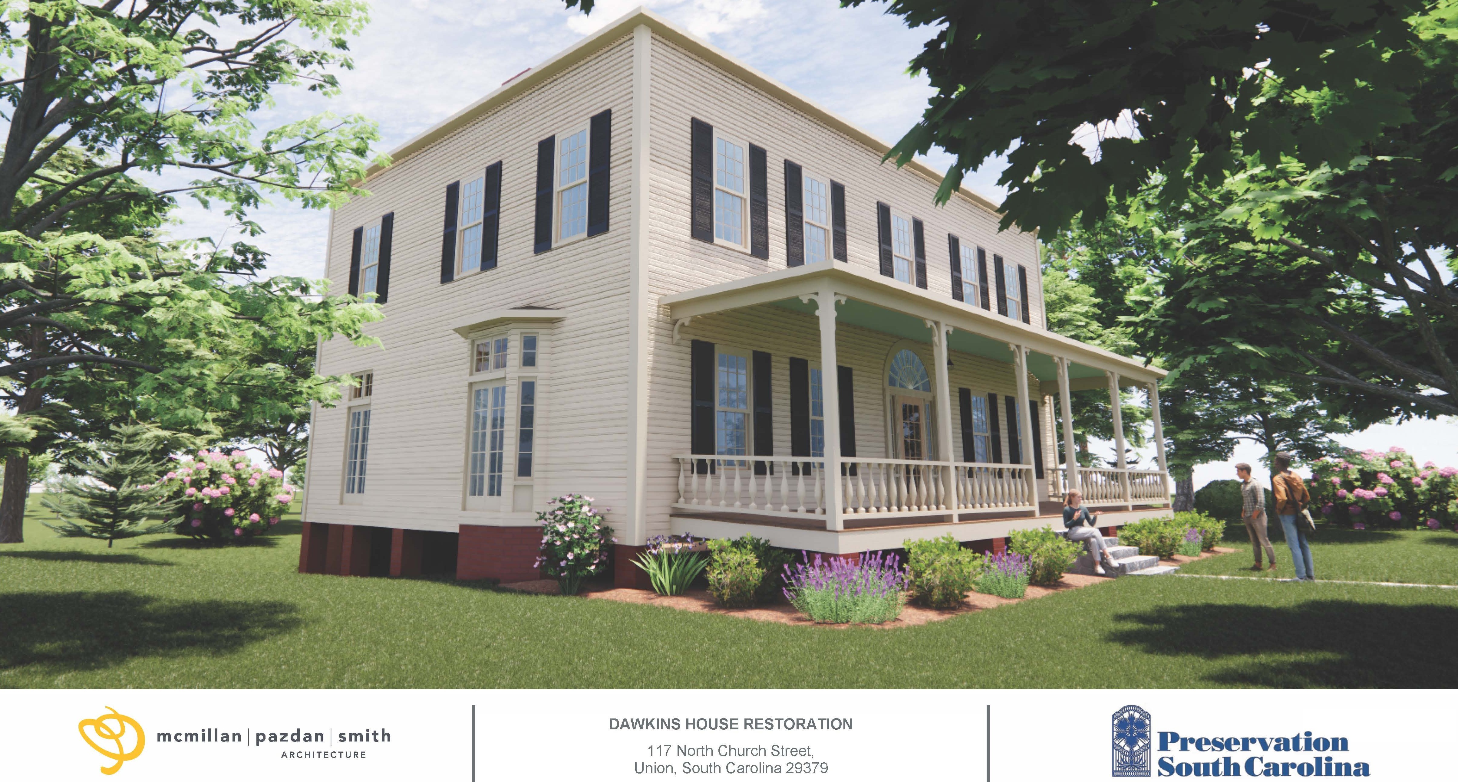 We are thrilled to share this rendering of a restored Dawkins House, the future alumni and corporate events center for the University of South Carolina-Union. Thank you to McMillan, Pazadan, Smith Architecture of Spartanburg for creating this rendering.